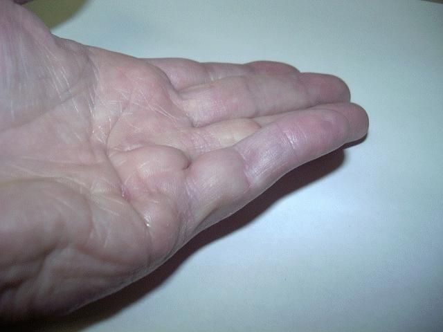 My wife and I sat across from him noting that he had the pictures of my hand that I'd emailed him already displayed on his computer monitor. He then personally completed a form asking me basic questions such as what allergies I have, have I had any surgeries, etc. He obviously didn't want to encounter surprises but he was also looking for a possible event that could have triggered my expression of Dupuytrens. We decided that it could have been the hand I landed on when I fell and broke my hip. There was apparently no need to even take my blood pressure. He briefly looked at both hands, took out a protractor and confirmed that my pinky finger did in fact have a Stage II contracture. He also assured me that it could be corrected with a single 20 minute procedure. After these preliminaries, he said "let's get to work."